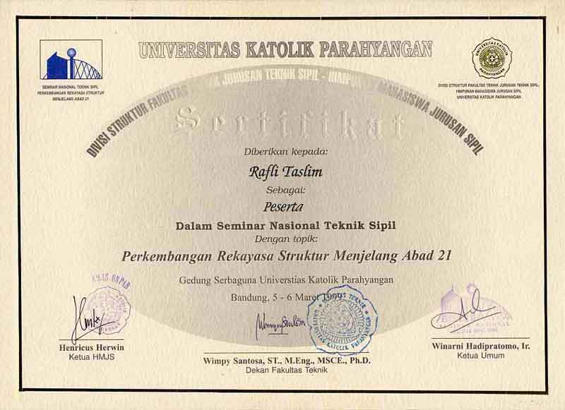 Rafli's Page > Curriculum Vitae > Seminar : National Seminar of Civil Enginering